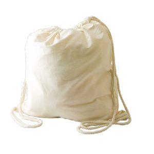 Calico backpack with double cotton rope drawstrings. Ideal for environmental projects as calico (cotton) is a renewable resource and bags are continually re-used. The bags is renewable, reusable, biodegradable and it is printed using renewable energy.
