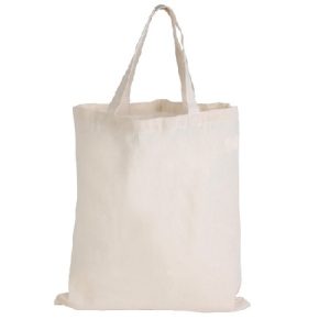 Double short handle calico tote bags. Ideal for environmental projects as calico is a renewable resource. Join the revolution to reduce the use of plastic shopping bags!