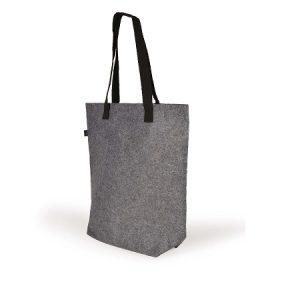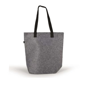 Tote bag made from 1mm RPET Felt with long polyester webbing handles and bottom gusset. RPET material is produced from recycled PET water bottles.