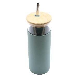 Glass Body | Silicone Sleeve | Metal Straw | Bamboo Lid