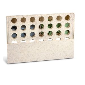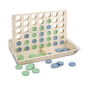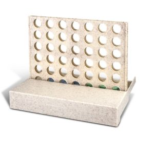 Classic two-player game of 4 in a Row where you are trying to beat your opponent to get four of the same colour dots in a row. The game and instructions are presented in an individual kraft box. The game is manufactured from a 50/50 blend of natural rice husk fibre and BPA-free polypropylene. Natural colour.
