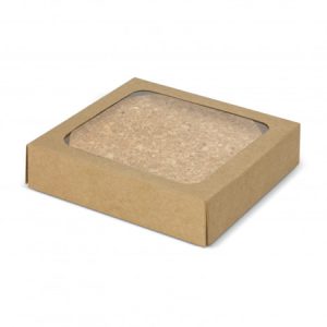 Set of four robust and stylish natural cork coasters that provide protection from heat and spills. When cork is harvested only the outer bark is removed from the tree creating a sustainable resource that is replenished throughout the life of the tree. It also has the benefit of a comfortable soft touch texture while being very durable. This set is nicely presented in a natural cardboard gift box with a window to show off the brand.