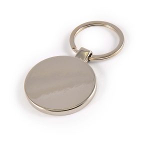 Circle shaped keytag with 32mm split ring.  Made from nickel plated cast zinc with a natural bamboo insert.