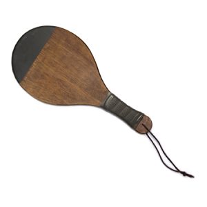 6-pcs Vintage inspired Paddle Tennis set. Set includes: 4 x vintage wooden paddles (45.5cm x 21cm), 2 x black rubber balls (6cm Dia.) Supplied in a natural canvas carry bag with two carry handles