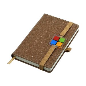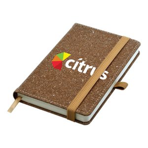 These stylish A6 notebooks are guaranteed to receive attention. Featuring a natural coloured Bonded Leather hard cover with edge stitching, 9mm wide natural coloured elastic closure, pen loop, marker ribbon and 192 pages of high quality cream paper.