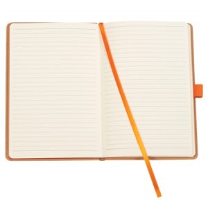 A hard bound cover made from recycled paper and colour accented epage edges for a stylish and more environmentally friendly feel. Ribbon page marker. Expandable accordion pocket. Includes 80 sheets of lined paper. FSC certified. Colour matching built-in elastic closure and pen loop.